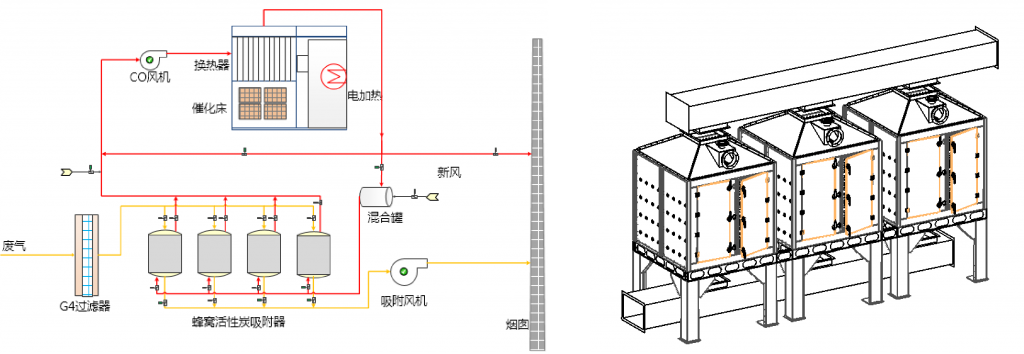 蜂窩活性炭吸附處理有機廢氣是利用活性炭微孔能吸收有機性物質的特性,把大風量低濃度有機廢氣中的有機溶劑吸附到活性炭中并濃縮,經吸附凈化有的氣體達標直接排放。